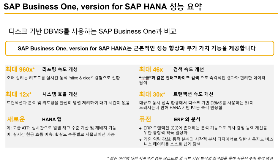 Q9. SAP Business One은 HANA DB 기반의 고속 분석이 가능한가요?